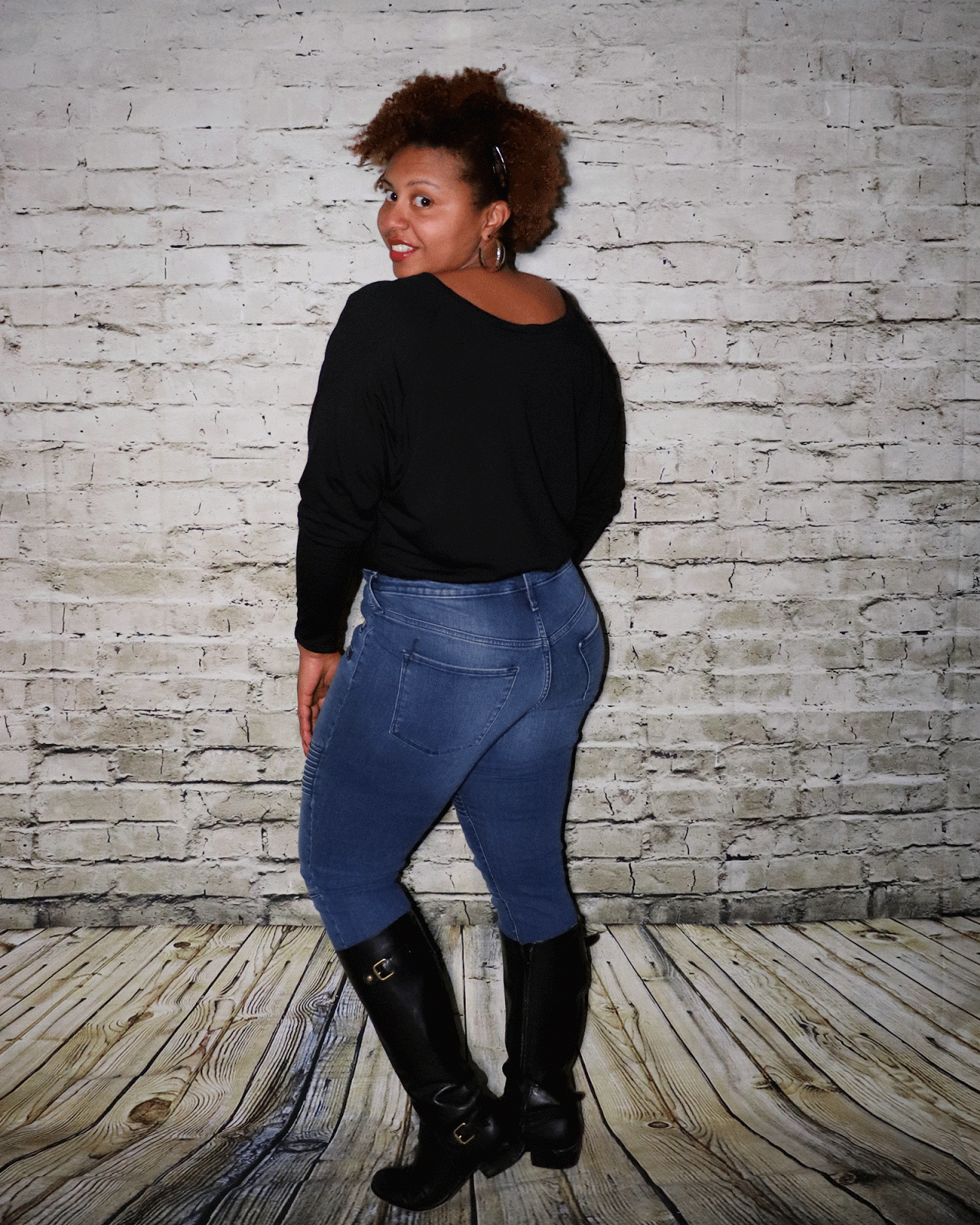 I've been eyeing the Black Superwash Wool Jersey since it was listed and this seemed like a great application for it. It's light weight gives the full top some drape but the wool content should be enough to keep me warm.